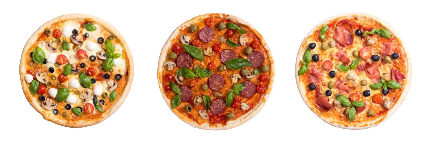 Der Grundbelag jeder Pizza ist Tomatensoße, Käse und Oregnao